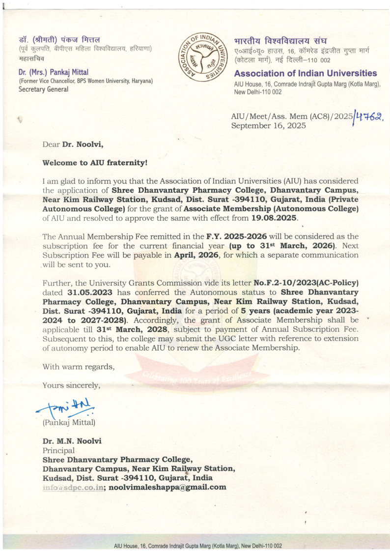 NBA-UG & NAAC Accredited, Accorded Status under UGC Sec 2 (f) of UGC Act 1956, Recognized as SIRO by DSIR, Govt. of India. Awarding University GTU, Ahmedabad, Approved by PCI, AICTE, New Delhi